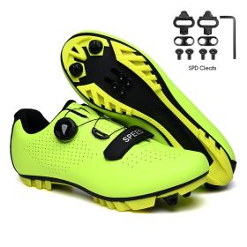 High Quality Men MTB Cycling Shoes Breathable Microfiber Bike Shoes Road Bicycle Shoes SPD Rubber Cleat Racing Cycling Snekaers (Color: Green, size: 39)