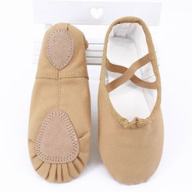 Girls Ballet Shoes Canvas Soft Sole Ballet Dance Slippers Children Practise Ballerina Shoes Woman Dance Shoes (Color: Tan, size: 39 (23.5cm))