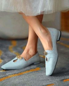 Low-cut Square Headgear Foot Mid-mouth Women's Shoes (Color: Light Blue, size: 35)