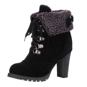 Fashion Ankle Boots Women Thigh High Heel Boots Pointed Toe Print Shoes (Color: Black, size: Size36)