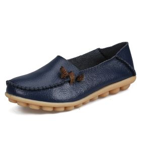 Women Flat Shoes Woman Fashion Women Slip On Shoes Leather Soft Walking Shoes Lightweight Woman Loafers Home Shoes Zapatos Mujer (Color: Dark blue, size: 6)